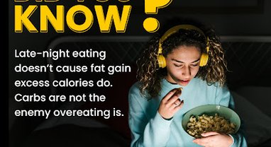 Late-night meals don’t cause fat gain; excess calories do.